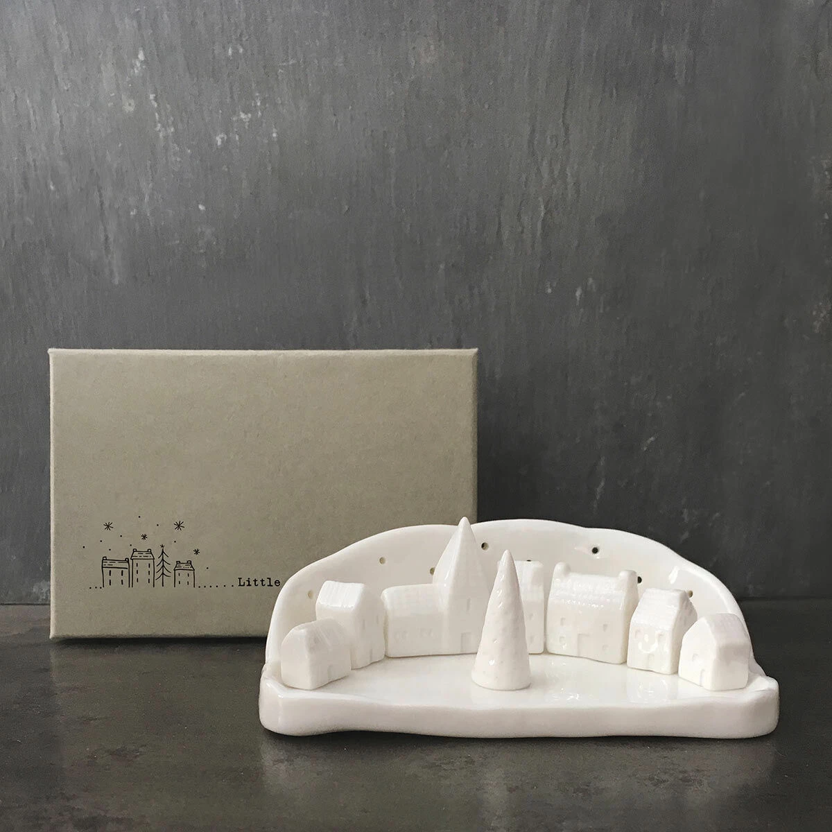 This beautiful porcelain Christmas village set from East of India is sure to stand out in your home this winter.
