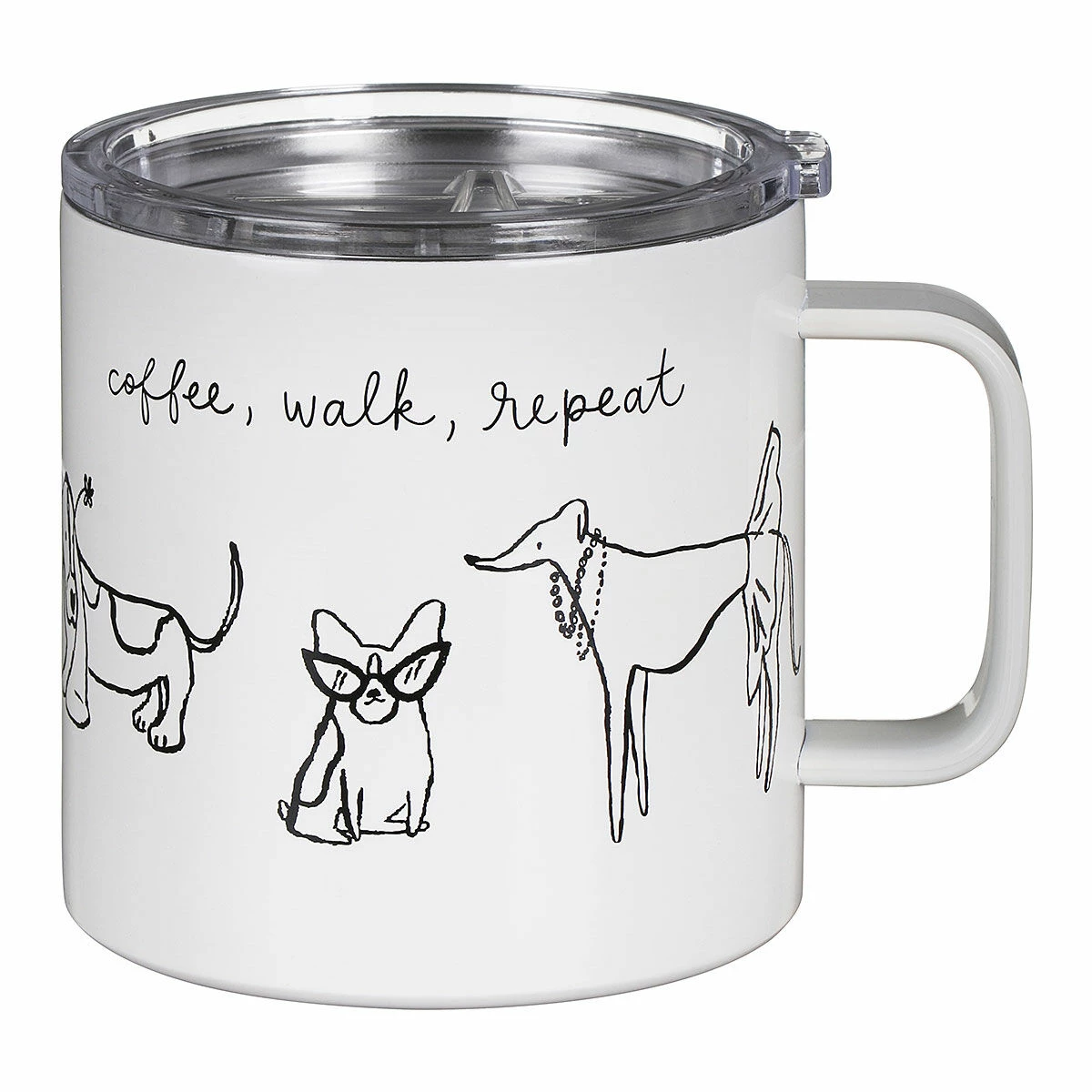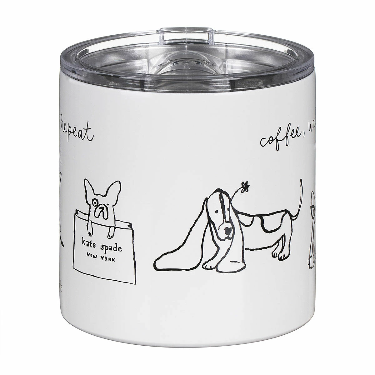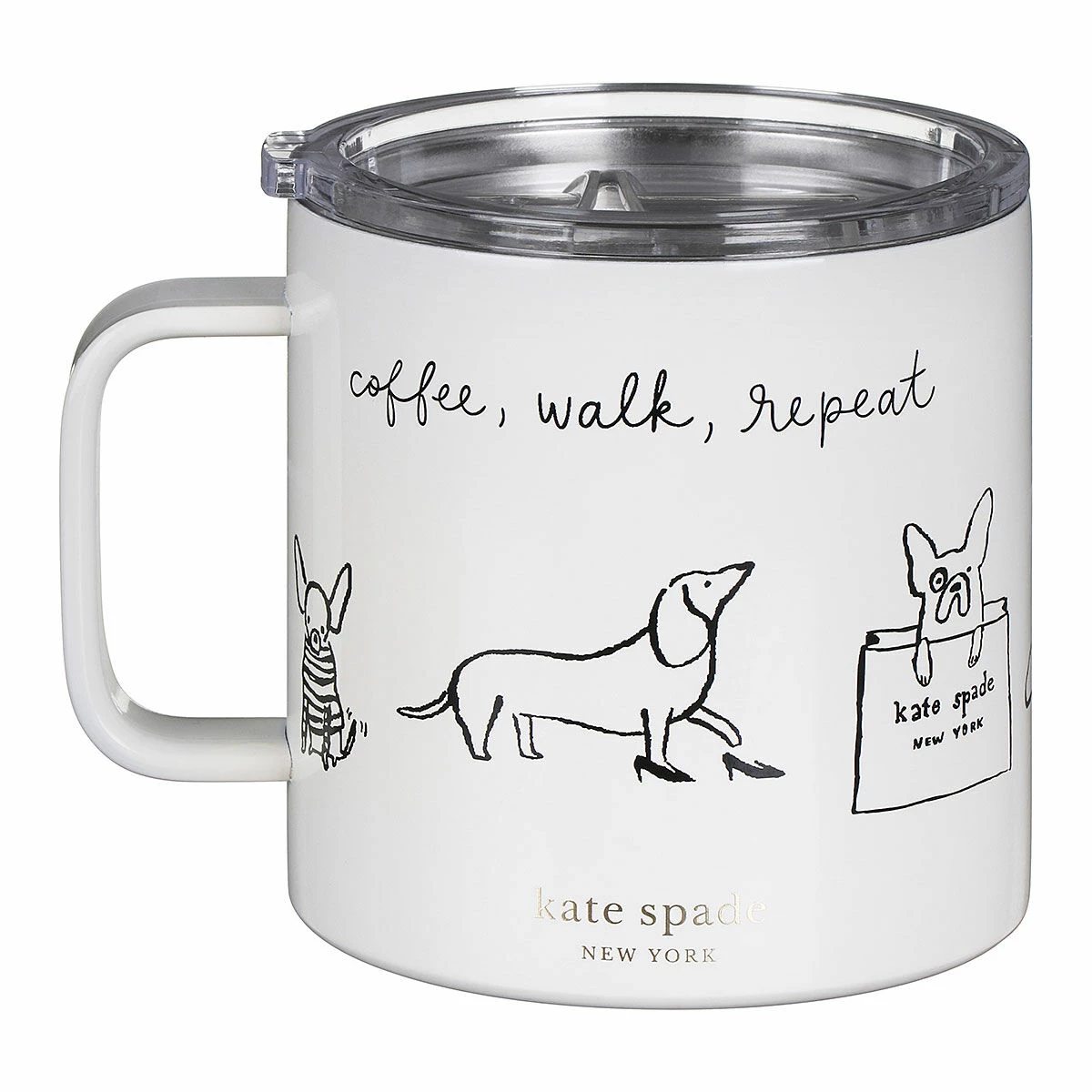 • Stay stylish on the go with the Kate Spade New York Dog Party Stainless Steel Travel Coffee Mug. Featuring a playful dog print, this mug is perfect for coffee lovers who appreciate chic design.