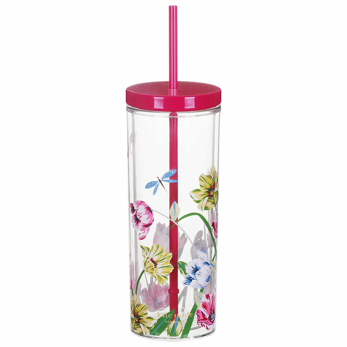 • Stay chic on the go with the Kate Spade New York Dragonflies And Tulips Acrylic Tumbler. Featuring a vibrant dragonfly and tulip design, this tumbler adds a touch of elegance to your everyday routine.