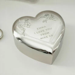 Personalised Floral Free Text Heart Trinket Box – Unique Ornament & Keepsake Gift