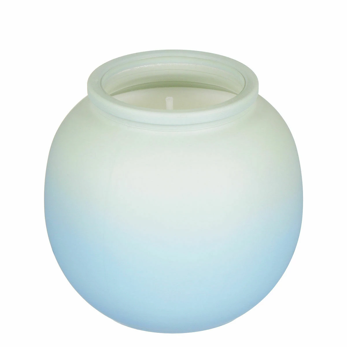 This beautiful candle is made from frosted glass and the rounded shape takes inspiration from vintage perfume bottles. There is a wonderful ombre colour scheme which blends from pale blue to a beautiful green, with a matching green lid. Once you have finished with your candle the glass pot is perfect for repurposing as a cute tealight holder or for storing small trinkets.