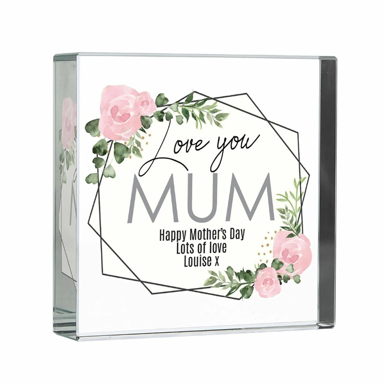 With a simple, pastel coloured rose design surrounding the personalisation this crystal token would look lovely in any room and could be used simply as decoration or more practically used as a paperweight to remind someone how special they are whilst at work.
