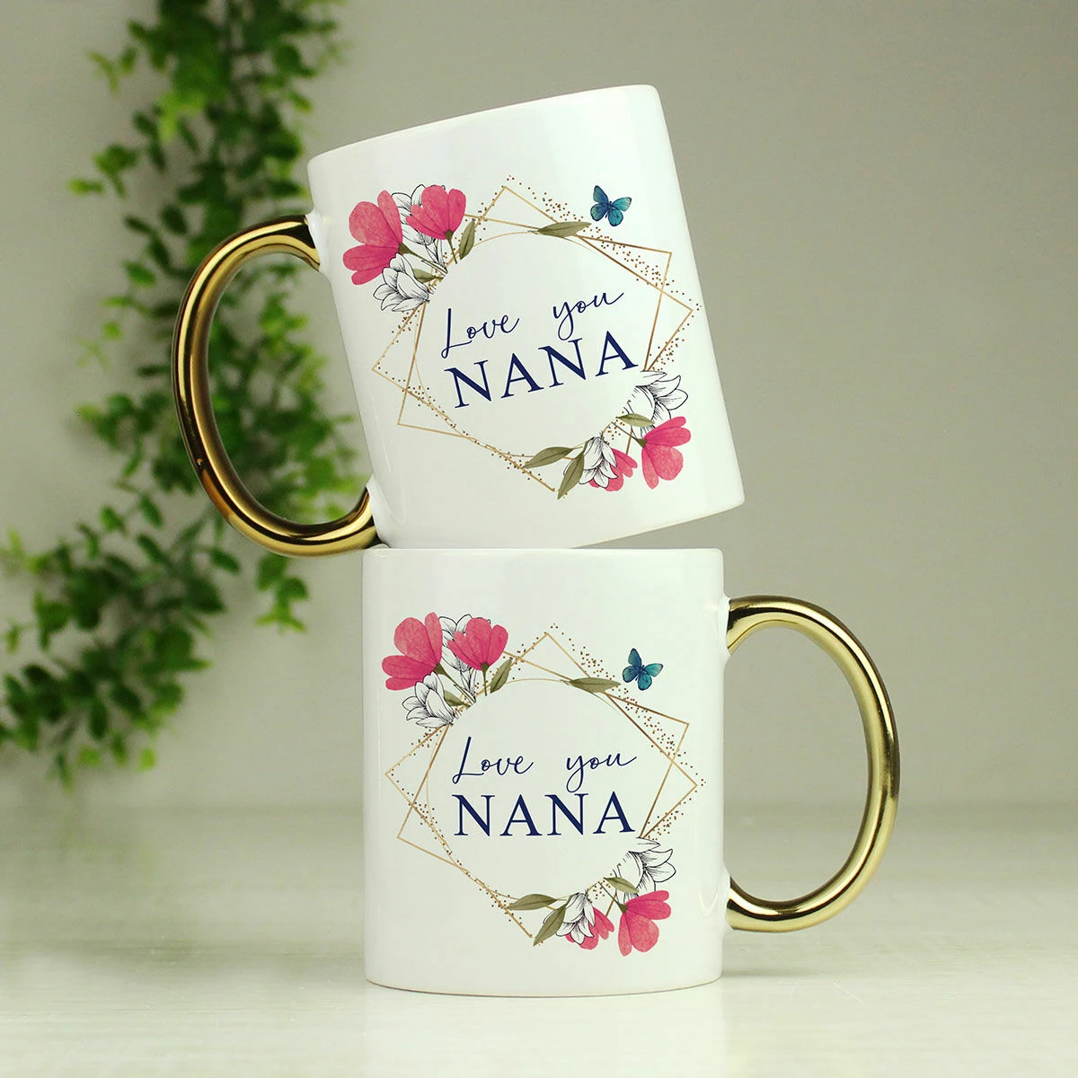 Create the perfect gift for birthdays, Christmas or Mother’s Day with this personalised Geometric Floral Gold Handle mug.