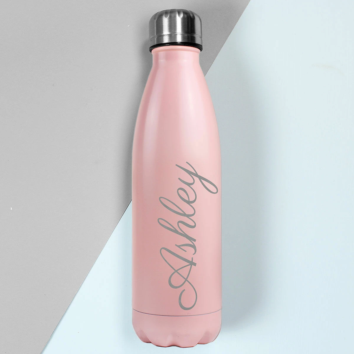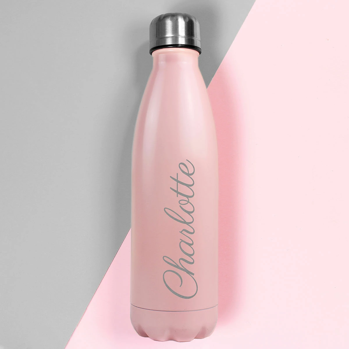 Stay hydrated on the go with this stylish Personalised Pink stainless steel 500ml double wall vacuum drinks bottle. It’s ideal for Mother’s Day, Birthdays, New Job, or Back To School.