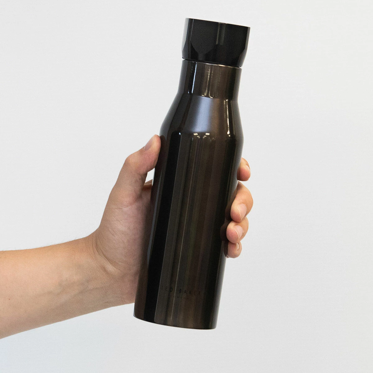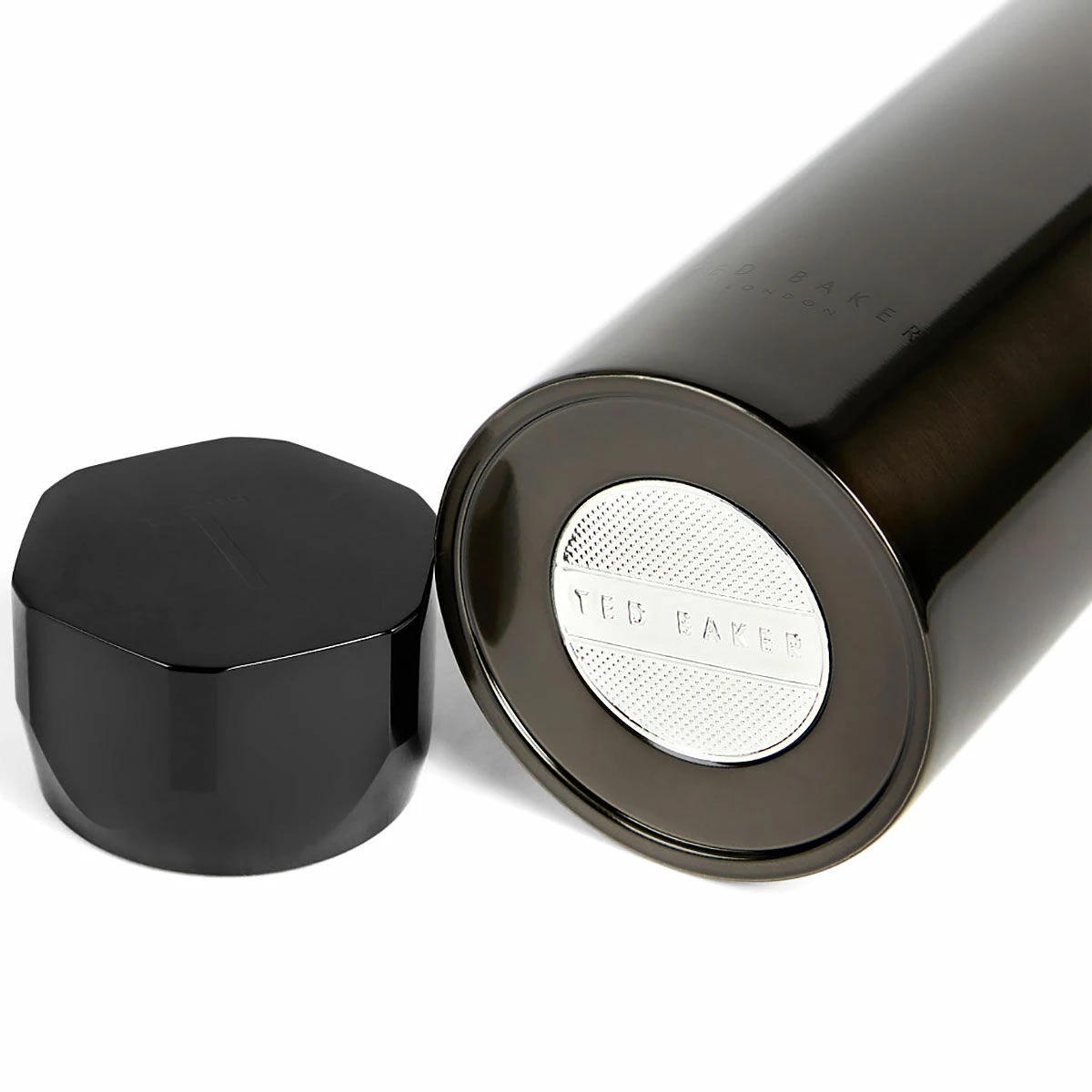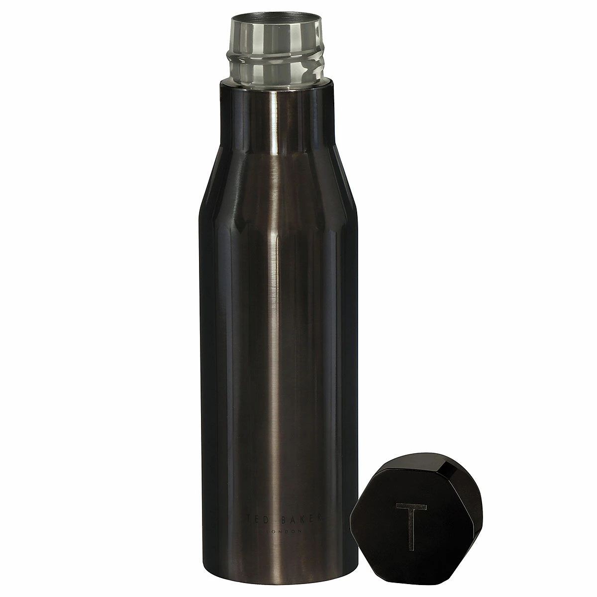 The bottle is a sleek black in colour with a metallic finish and has a hexagonal leak-proof lid ensures that your drinks are kept safe and secure and has the simple ‘T’ of the Ted Baker logo laser-etched on top that complements the design perfectly.