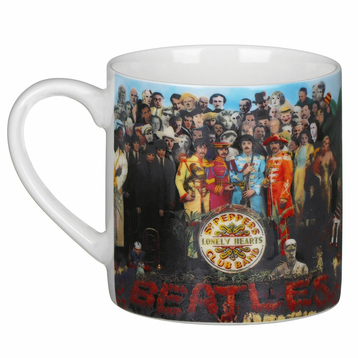 This stunning porcelain mug is decorated with the iconic Sergeant Pepper Lonely Hearts Club Band album cover, complete with white ceramic handle. This ceramic mug is perfect for tea, coffee and hot chocolate drinkers!