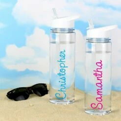 Personalised Island Water Bottle With Pink Text – Customisable Gift Idea