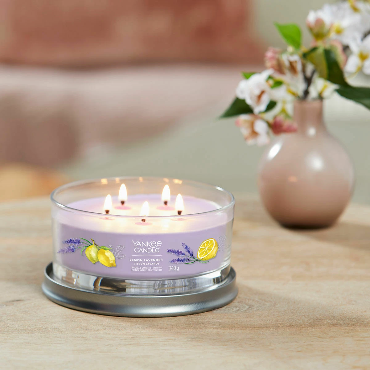 The wonderful fragrance of Lemon Lavender from Yankee Candle has a familiar and comforting feeling of floral freshness. The sleek glass vessel of this Signature Multi-Wick Tumbler candle compliments the fragrance and will look wonderful on your coffee table or mantlepiece. The candle comes with a silver metal lid that doubles as a stand to sit your candle on to protect your surfaces.