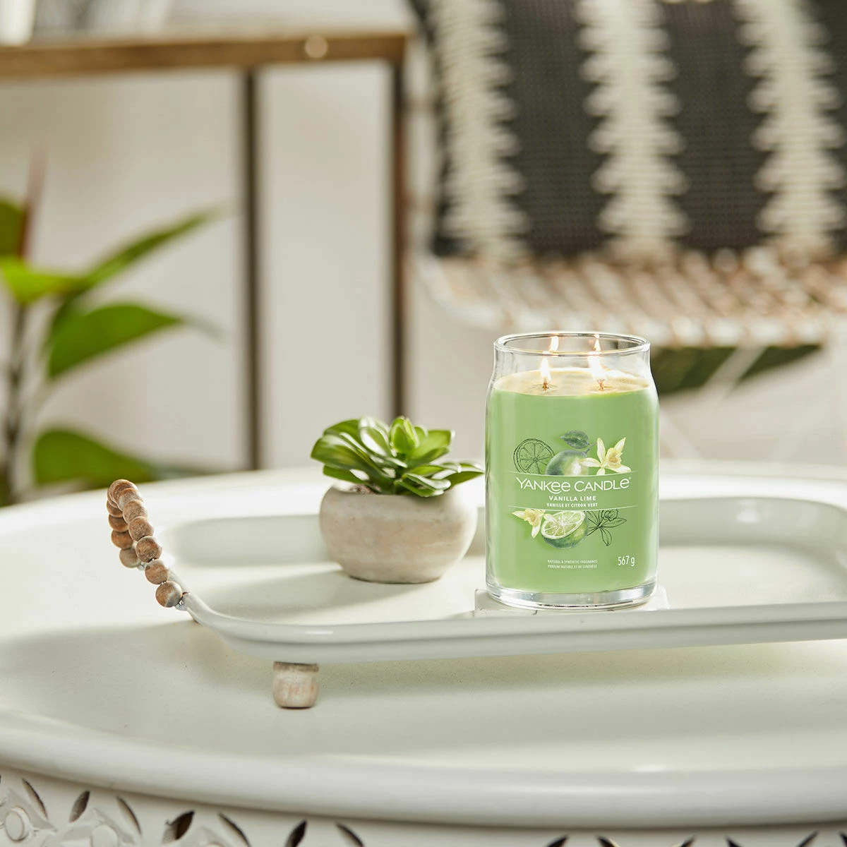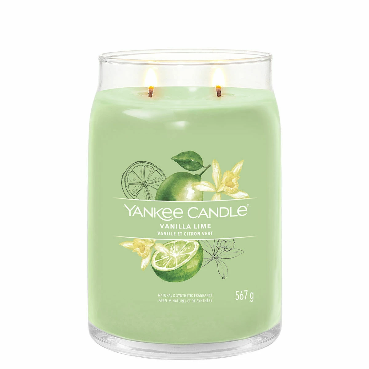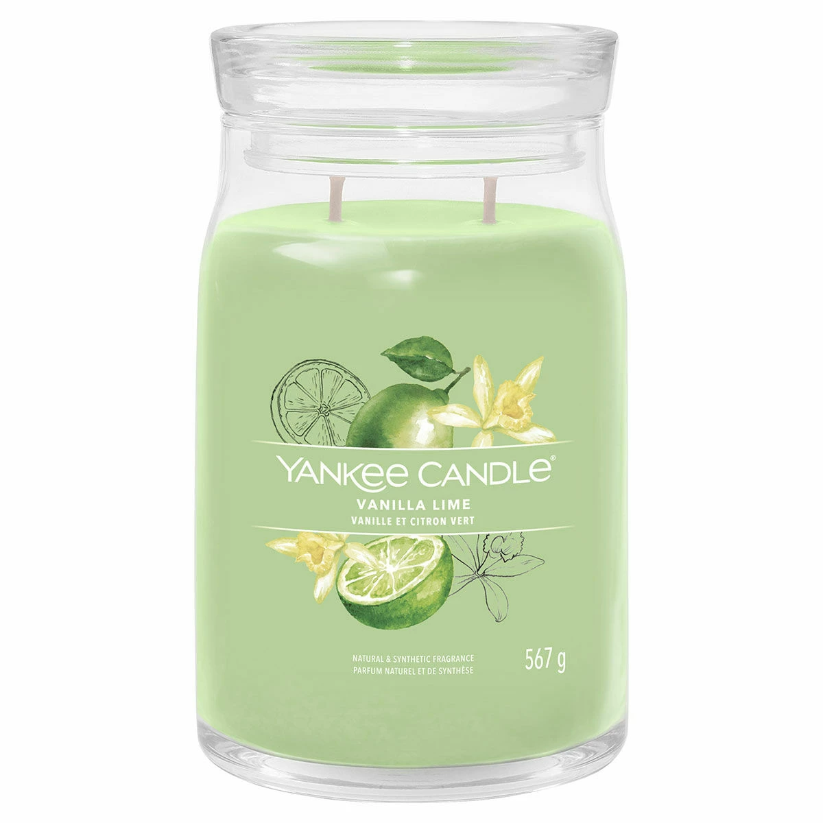 Enjoy the gorgeous Vanilla Lime fragrance in the wonderful Signature Large Jar Candle, a sleek glass vessel that compliments the fragrance and will look wonderful in your home. The wonderful fragrance from Yankee Candle is a smooth and refreshing blend, combining the creamy richness of vanilla with sweet cane sugar and a zesty lime twist.